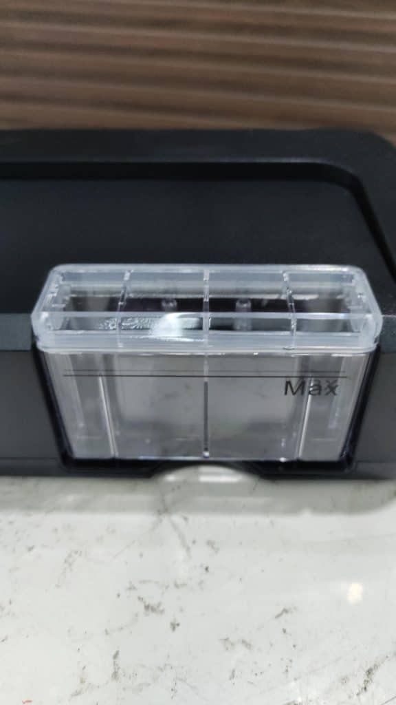 - Máy có 1 hộp nhỏ để chứa nước khi hút các sản phẩm ướt hoặc có nước. Hộp này được thiết kế vừa vặn với kích thước máy giúp máy trông gọn gàng hơn.